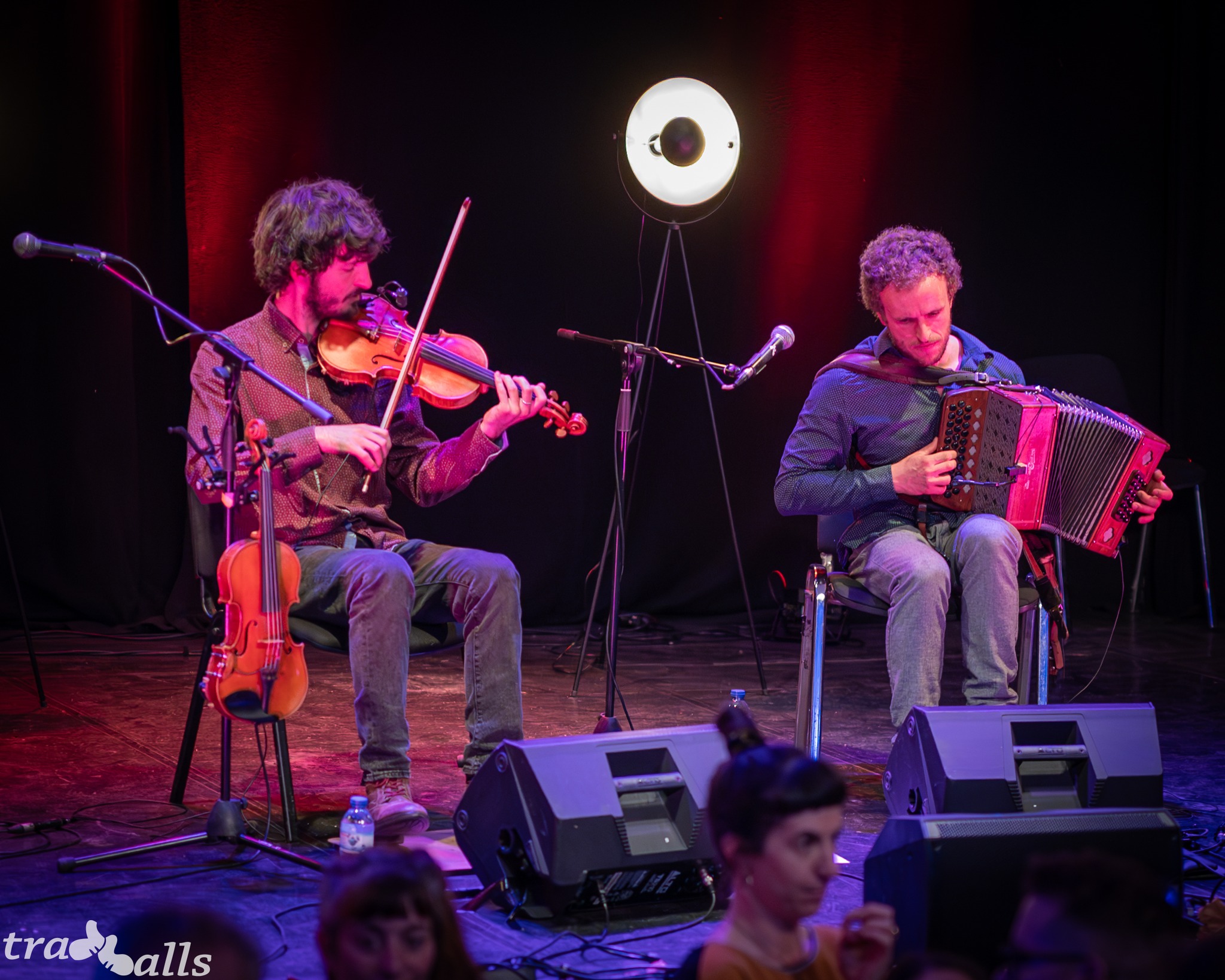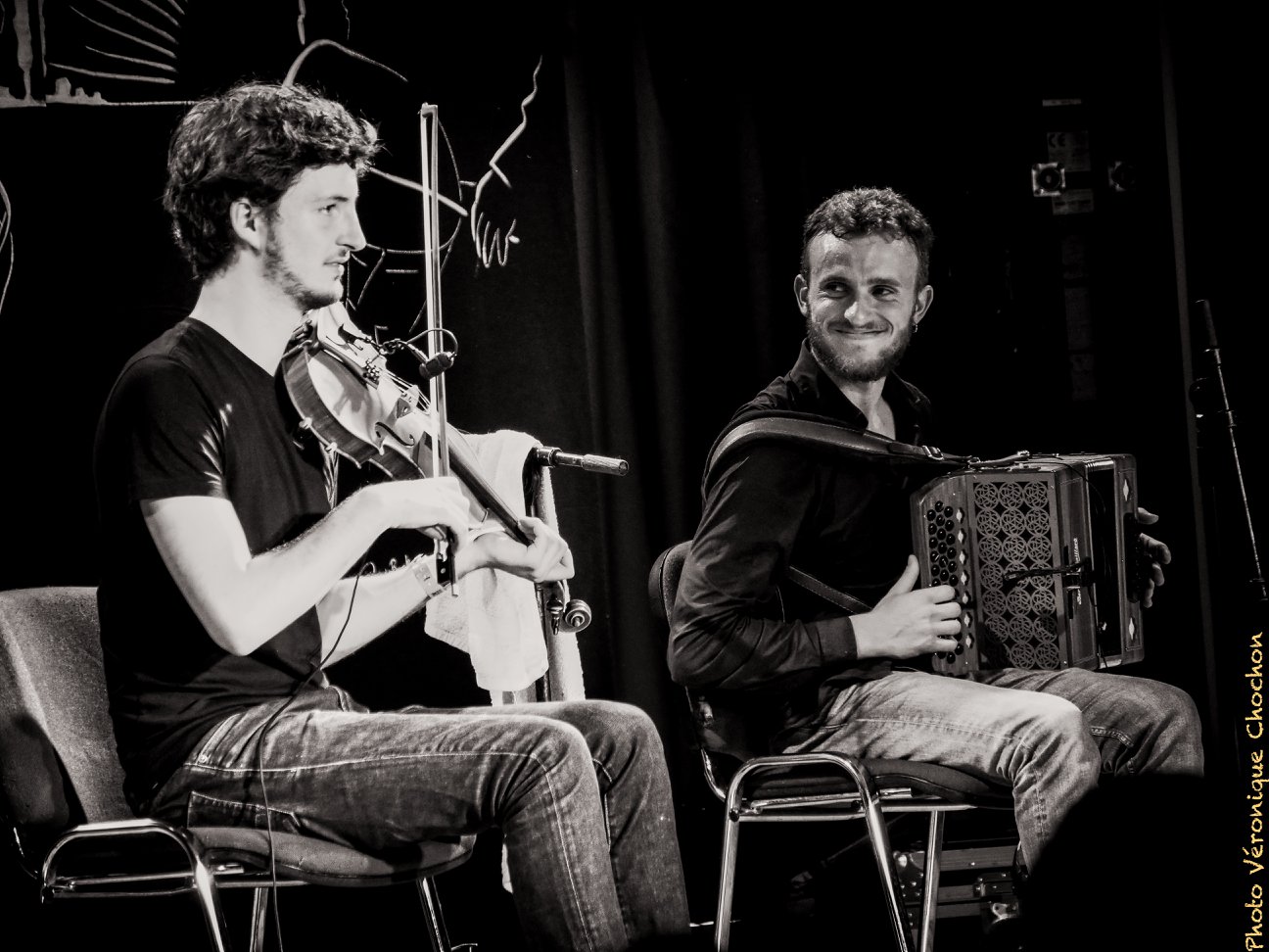 Camille et Léon ont commencé à partager et jouer ensemble dès leur rencontre en 2011, dans les bœufs qui durent jusqu'à l'aube. Leur musique a grandi avec eux au fil des années. Également musiciens du groupe Bargainatt, ce qu'ils aiment partager en duo, c'est un pont qui relie des compositions contemporaines de diverses inspirations à une passion pour les musiques traditionnelles populaires du massif central. Avec une grande fraîcheur, ils passent d’une belle mazurka néo-folk à une bourrée auvergnate bien typée, d’un cercle circassien énergique à une scottish bien rythmée. Harmonie et cadence, le tout dans une dynamique qui fait danser autant les oreilles que les pieds.